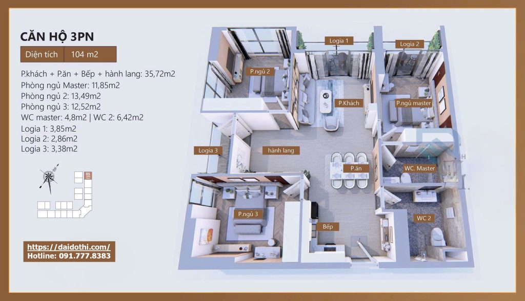 Từ ảnh 3D căn hộ 104m2: